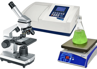 Instrumentos, recipientes y aparatos diseñados para realizar síntesis, mediciones, análisis y ensayos de sustancias.